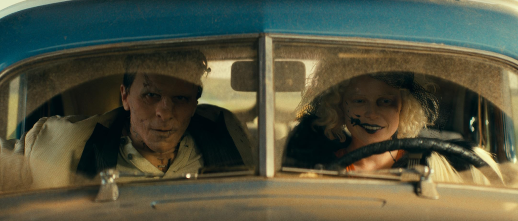 Where The Bride! undeniably excels is in its atmosphere. The production design is sumptuous, wrapping the film in velvet shadows and flickering neon. Nightclubs hum with danger and desire, alleyways feel like secrets waiting to be uncovered, and the entire world pulses with a kind of theatrical elegance. There are moments that feel almost dreamlike sequences that drift into musicality or surrealism, echoing the kind of cinematic experimentation you might find in films like Bonnie and Clyde, but with a more fractured, modern sensibility.